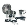 Deze compacte lichtgewicht kookset voor 2 personen is de perfecte keuze voor solo‑avonturen, trekking of kamperen. Gemaakt van 100% RVS met een beker, bord en PP‑bestek, biedt de set een royale inhoud van 1600 ml en is toch lichtgewicht met slechts 640 gram.