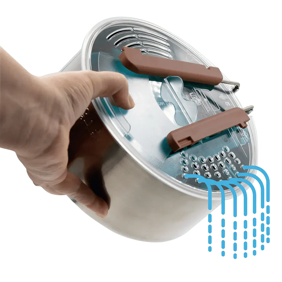 Het slimme ontwerp bevat een vergiet‑deksel en een handgreep die ook als klem dient, waardoor koken en serveren in het veld eenvoudig en veilig is. De kookset is food safe, BPA‑vrij, bestand tegen deuken en barsten, en houdt geen smaken vast of geeft ze af. Na gebruik is de set eenvoudig te reinigen; hij is vaatwasserbestendig, maar voor optimale levensduur wordt handwas aanbevolen. Dankzij herbruikbare en recyclebare materialen is dit een duurzame en praktische metgezel voor elk buitenavontuur.
