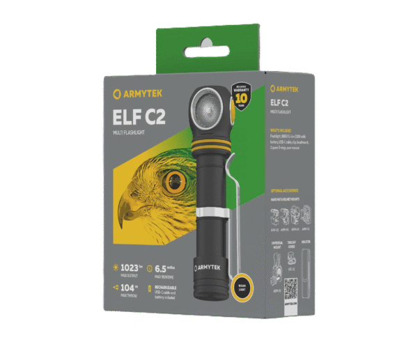Maak kennis met de Armytek ELF C2 USB-C (Warm Light): de perfecte balans tussen kracht, comfort en compromisloze betrouwbaarheid. Met een indrukwekkende 1023 lumen en een bereik tot 104 meter levert deze zaklamp krachtige prestaties, terwijl het warme licht zorgt voor een aangename, natuurlijke verlichting die ideaal is voor langdurig gebruik zonder vermoeide ogen.