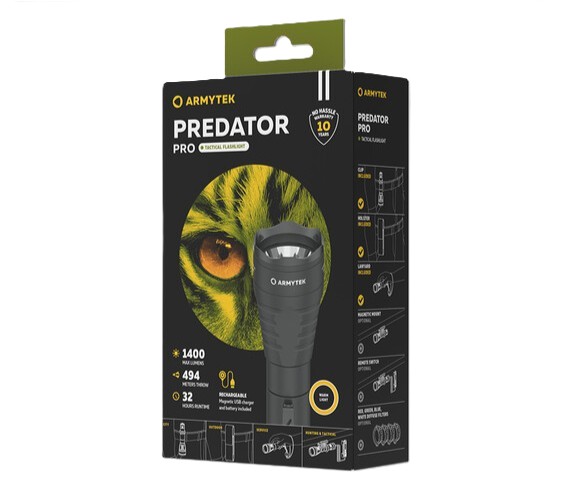 De Armytek Predator Pro White is een tactische zaklamp van de nieuwste generatie, ontworpen voor maximale precisie bij gespecialiseerde taken en jachttoepassingen. De extreem smalle, gerichte lichtbundel met minimale zijverstrooiing verlicht doelen tot 494 meter en is optimaal voor effectief gebruik op 100-300 meter afstand.