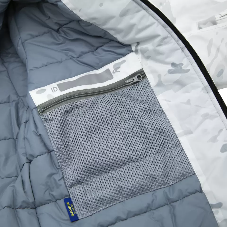 Deze prestatiegerichte jas is ontwikkeld in samenwerking met speciale eenheden en bergprofessionals. Dankzij een geoptimaliseerde snit en minder buitenste naden biedt de jas maximale bewegingsvrijheid en een minimale IR-handtekening. De Alpine-variant is speciaal ontworpen voor gebruik in koude, winderige en vochtige bergomstandigheden. Het wind- en waterafstotende buitenmateriaal en de opnieuw ontworpen, in 2 richtingen verstelbare capuchon zorgen voor optimale bescherming tegen de elementen.
