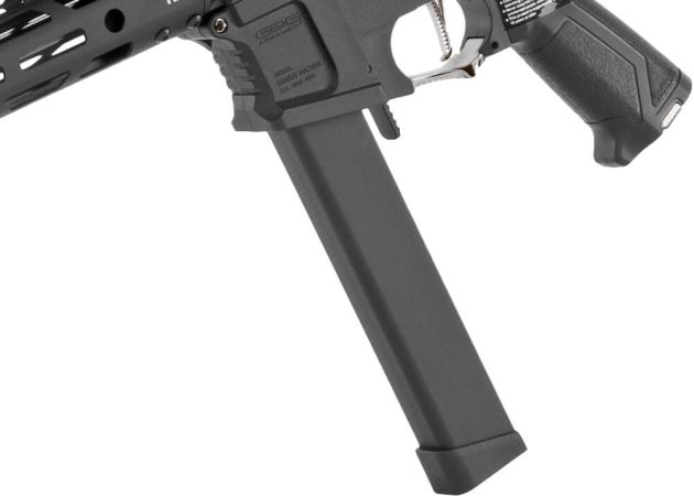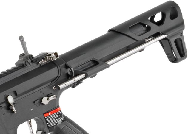 De grotendeels skeletonised handguard houdt het gewicht laag en zorgt voor uitstekende wendbaarheid. Samen met de ergonomische pistoolgreep met antisliptextuur en de verstelbare PDW-stijl kolf biedt deze replica een comfortabele en stabiele handling. De kolf kan bovendien worden verwijderd om toegang te krijgen tot het batterijcompartiment in de buffertube.