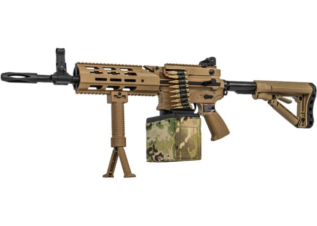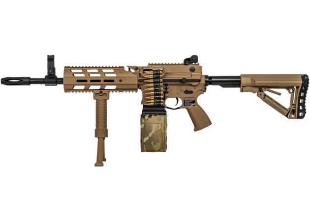 De replica is voorzien van een verstelbare hop-up, een geïntegreerde MOSFET voor betere trekkerrespons en bescherming van de elektronica, en meerdere vuurstanden waaronder semi-, volautomatisch en een verborgen burstmodus. Met een doorlopende Picatinny rail, M-LOK sleuven en een meegeleverde voorgrip die direct om te zetten is in een bipod, is de G&G CM16 LMG DST volledig naar wens uit te rusten voor elke airsoftmissie. Bovendien is hij compatibel met standaard M4-magazijnen en beschikt hij over een verstelbare kolf, waardoor je altijd de ideale schiethouding kunt vinden.