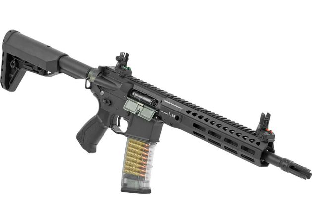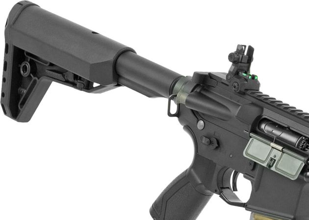 Een groot voordeel van deze replica is het quick-change spring systeem, waarmee je eenvoudig de veer kunt vervangen zonder de kolf of buffertube te verwijderen. Hierdoor kun je de kracht van de replica snel aanpassen aan de regels van het speelveld. De in lengte verstelbare kolf van slagvast polymeer zorgt ervoor dat je eenvoudig de juiste schouderpositie en schiethouding vindt, terwijl de ergonomische pistoolgreep zorgt voor een comfortabele en stabiele grip.