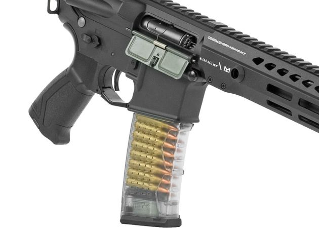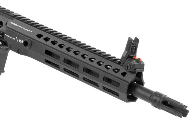 De 9 inch M-LOK handguard biedt voldoende ruimte voor het monteren van accessoires zoals een voorgreep, zaklamp of laser. Bovenop loopt een Weaver/Picatinny rail van de handguard door over de receiver, waardoor je eenvoudig een red dot of richtkijker kunt monteren. De meegeleverde dual profile flip-up sights bieden bovendien twee verschillende manieren om te richten en zijn eenvoudig te verwijderen wanneer je een optic wilt gebruiken.