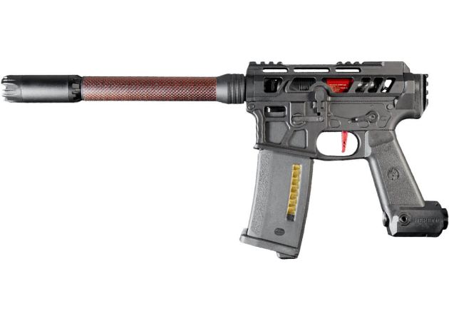 De replica is uitgerust met de kenmerkende Heretic Labs tank grip, waarin een Storm Category 5 regulator is geïntegreerd. Hierop kan direct een HPA‑tank worden aangesloten, waardoor je geen tank op je rug hoeft te dragen. Dit ontwerp zorgt voor meer bewegingsvrijheid en maakt de replica compacter, wat vooral in kleine ruimtes en snelle speedsoft‑situaties een groot voordeel is.