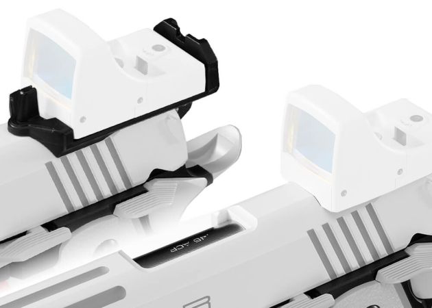 De Tokyo Marui Hi‑Capa DOR White is een stijlvolle en hoogwaardige sidearm die prestaties en uitstraling perfect combineert. Dankzij het Direct Optics Ready (D.O.R.) systeem monteer je eenvoudig een red dot, waardoor je sneller en nauwkeuriger kunt richten tijdens intensieve skirms.